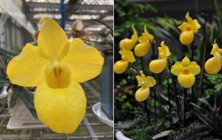 兰科兜兰属地生或半附生兰花,为中国特有物种,属国家一级重点保护野生植物,也是濒危野生植物。杏黄兜兰具有非常罕见的杏黄色花,填补了兜兰中黄色花的空白,有“金童”之称,又名“金拖”。