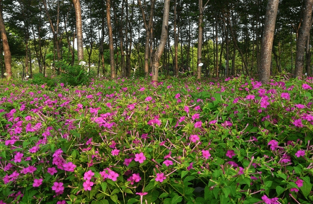别名胭脂花、洗澡花、夜晚花。紫茉莉科,紫茉莉属。常绿亚灌木,华南地区可栽培成宿根灌木观赏,高约0.5~1.0m。主茎直立,具膨大的节。单叶对生,卵形或卵状三角形,长3~14 cm,宽2~9 cm,全缘。花常数朵簇生枝端,花萼呈花瓣状,喇叭形,花午后开放,次日午前凋谢,花色紫红、黄、 白或杂色。瘦果球形,黑色。花期6月至翌年2月; 果期2~6 月。原产于南美热带地区。中国华南、华北地区均有栽培或逸为野生。