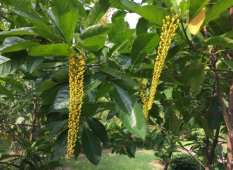 金虎尾科垂序金虎尾属常绿大灌木至小乔木,原产于南美洲的亚马逊雨林,在热带地区常作为观赏植物栽培,在我国极少见。其花冠黄色,花聚生成总状花序,长可达40~50 cm,下垂,形似金链,...