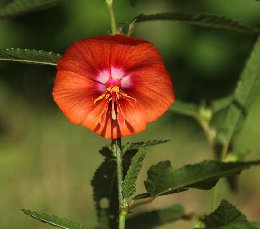 拉丁名: Pentapetes phoenicea L. 锦葵科,午时花属。一年生草本,高可达1 m。花瓣5枚,红色,花期夏秋两季。原产于印度,在我国广东、广西、云南等地多有栽培。午时花喜阳光充足、温暖的环境...