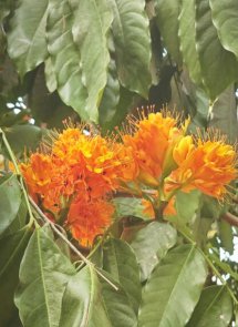 拉丁名: Saraca dives Pierre 豆科,无忧花属,又名袈裟树。常绿小乔木。大型羽状复叶。嫩叶略带紫红色,叶柄柔软下垂。花金黄色,后渐红。荚果棕褐色扁平,种子形状不一。花期3-5月。 原产...